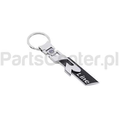 Stylový kovový přívěsek na klíče VW R-line zdůrazňující sportovní charakter vozidla.