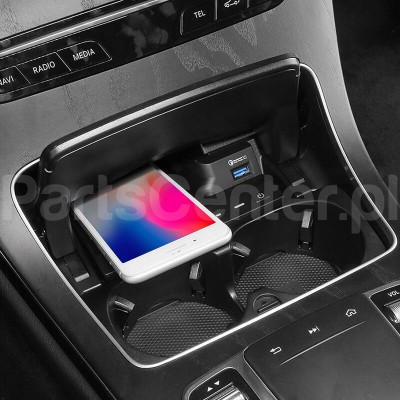 Bezdrátová nabíječka pro mobilní telefony určená pro vybrané modely vozů Mercedes.