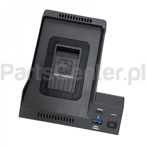 Bezdrátová nabíječka mobilních telefonů, plně kompatibilní s přihrádkou v palubní desce vozu Mercedes třídy E (W213). Umožňuje současné bezdrátové nabíjení a nabíjení prostřednictvím výkonných portů Quick Charge 3.0 a USB-C.