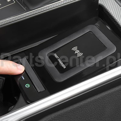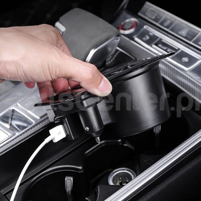 Bezdrátová nabíječka mobilních telefonů, plně kompatibilní s přihrádkou řadicí páky v modelech Audi A6 C8 generace a A7 C8 generace. Nabíječka umožňuje současné bezdrátové nabíjení a nabíjení z výkonného USB portu Quick Charge 3.0.