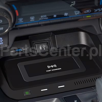 Wireless mobile phone charger, fully compatible with the gear shift compartment in the Toyota RAV4 generation V. The charger allows for simultaneous wireless charging and charging from the efficient Quick Charge 3.0 USB port.