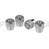 Set of 4 chrome plastic valve caps with white laurel logo.