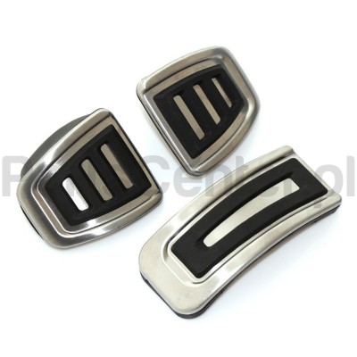 High-quality stainless steel pedal covers. They give your vehicle a sporty look and significantly enhance its interior. The combination of brushed stainless steel and non-slip rubber provides the perfect blend of design and safety. The covers are equipped with rubber inserts for grip. The set includes pedal covers and a footrest.