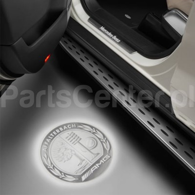 Set of 2 LED door projectors with AMG light animation, dedicated to selected Mercedes vehicle models.
