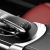 Decorative strip with a button to release the armrest storage compartment lock in Mercedes W205 (C-Class) and X253 (GLC-Class).